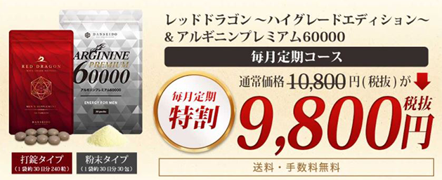 全体的に見てとても惜しいサプリではあります。金額が高いと思われる人は粉末タイプの「アルギニンプレミアム60000」無しで、レッドドラゴン単品で購入するのもいいかもしれません。