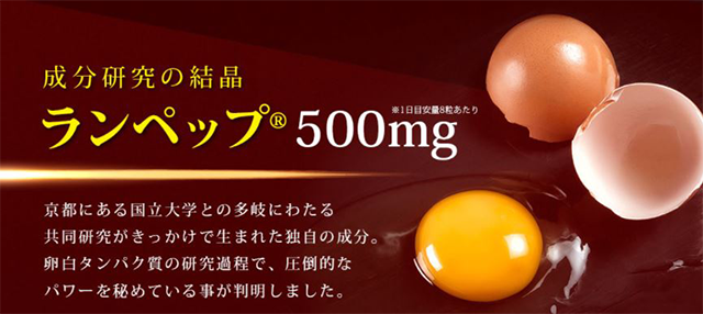 このランペップは卵白から抽出される成分で、アルギニンやバリン、ロイシン、イソロイシンといった精力に欠かせない成分を豊富に含んでいます。