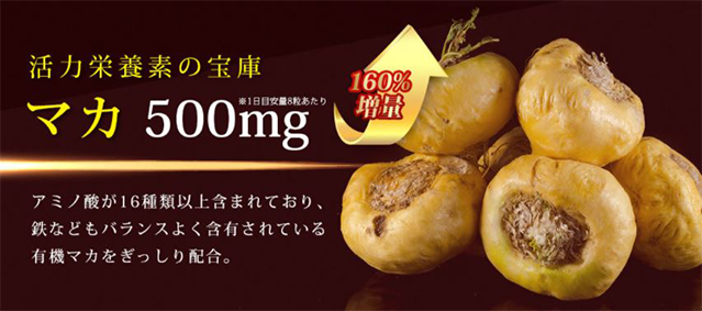 ただし、レッドドラゴンに含まれるマカは、吸収効率があまり高くない生マカなので後述する「バイオペリン」による吸収促進効果が重要になります。