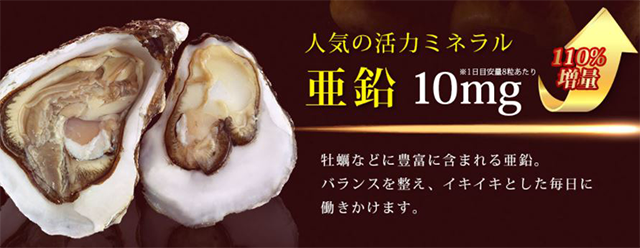 亜鉛は牡蠣(カキ)に多く含まれる成分で、活発なホルモンの生成を促す効能があります。